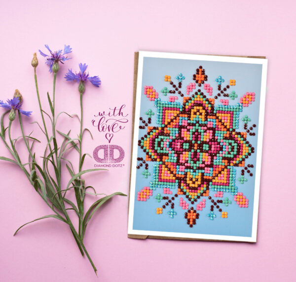 Greeting card, pre-sorted diamonds, envelope and instructions.